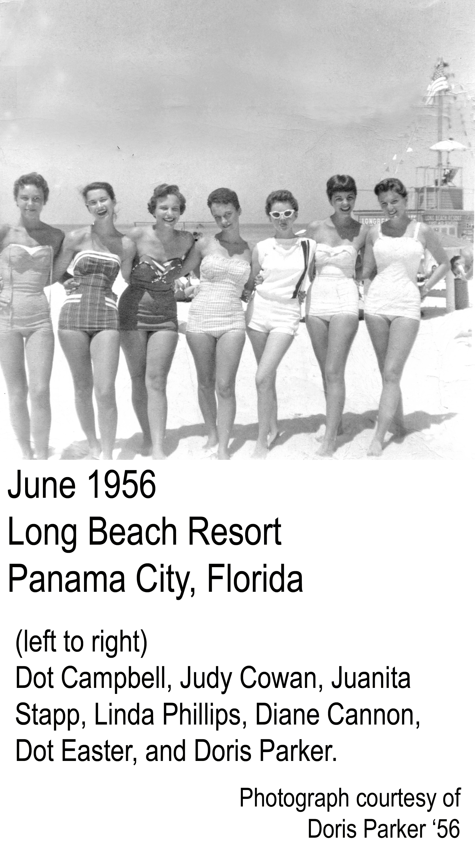 - At Long Beach Resort, Panama City, Florida: Dot Campbell, Judy Cowan, Juanita Stapp, Linda Phillips, Diane Cannon, Dot Easter, and Doris Parker.
