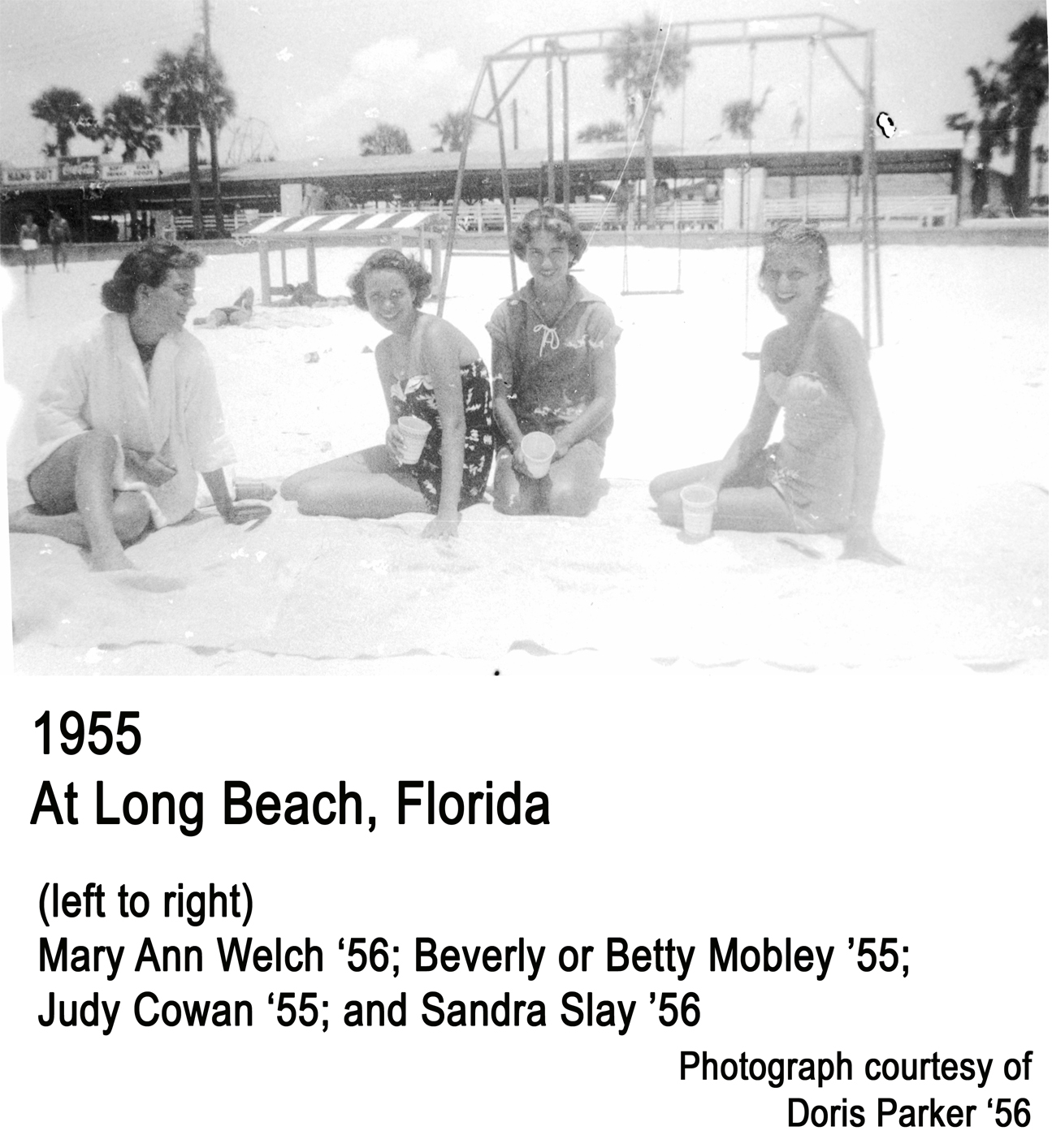 - At Long Beach, FL: Mary Ann Welch ’56; B. Mobley ’55; Judy Cowan ’55; and Sandra Slay ’56