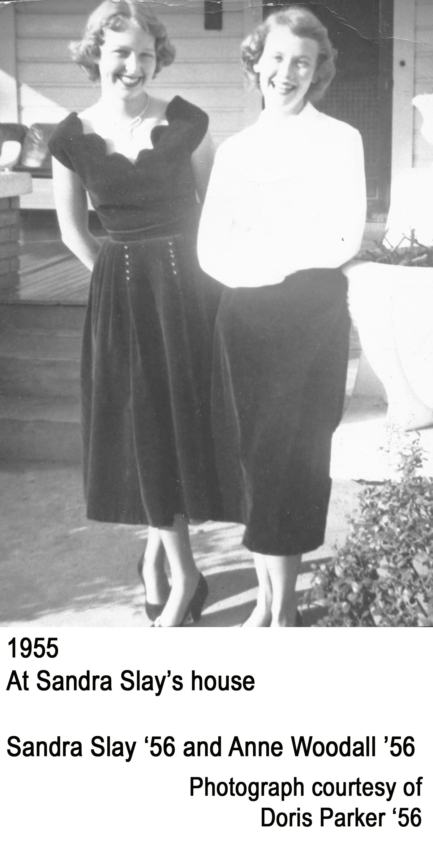 - At Sandra Slay’s house: Sandra Slay ’56 and Anne Woodall ’56