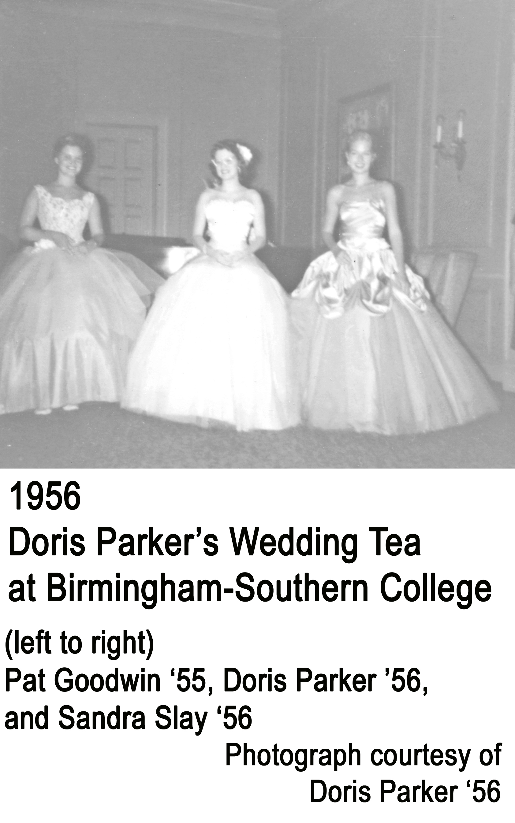 - Doris Parker’s Wedding Tea: Pat Goodwin ’55; Doris Parker ’56; and Sandra Slay ’56