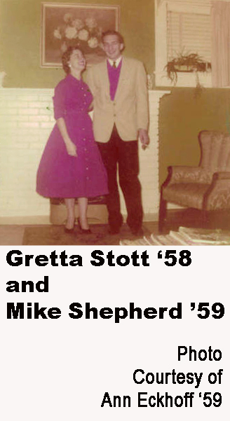 - Gretta Stott ’58 and Mike Shepherd ’59, on their way to a party