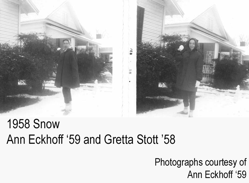 - Ann Eckhoff ’59 and Gretta Stott ’58 in snow