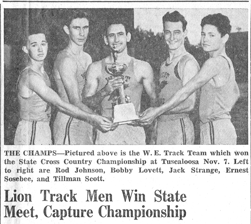 - Lion Track Men Win State Meet, Capture Championship: Rod Johnson, Bobby Lovett, Jack Strange, Ernest Sosebee, and Tillman Scott