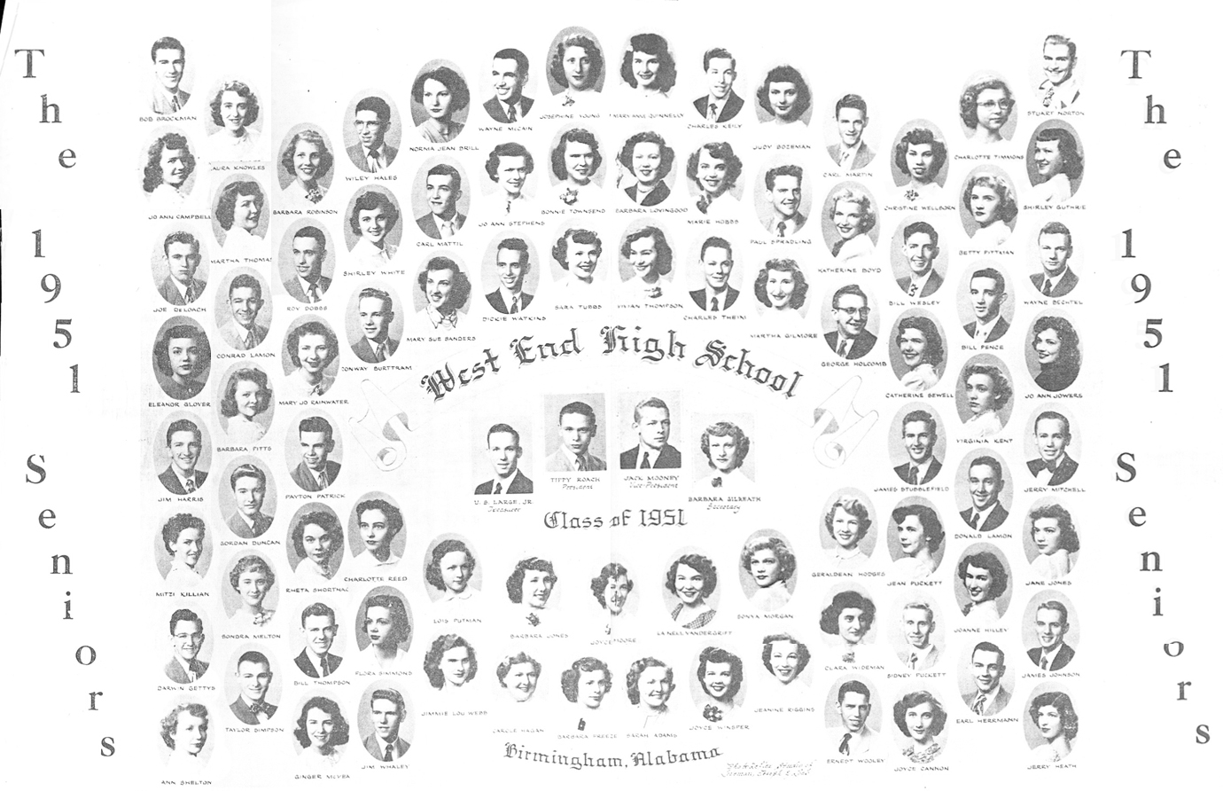 Here are the materials and information received for the Class of 1951, West End High School, Birmingham, Alabama.