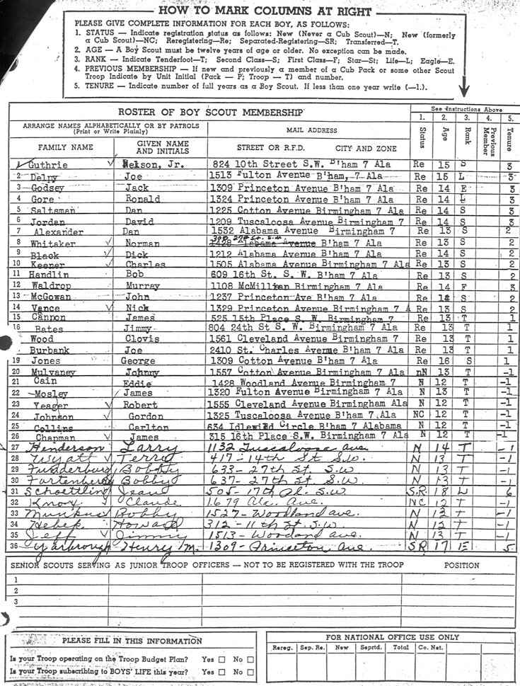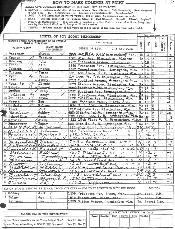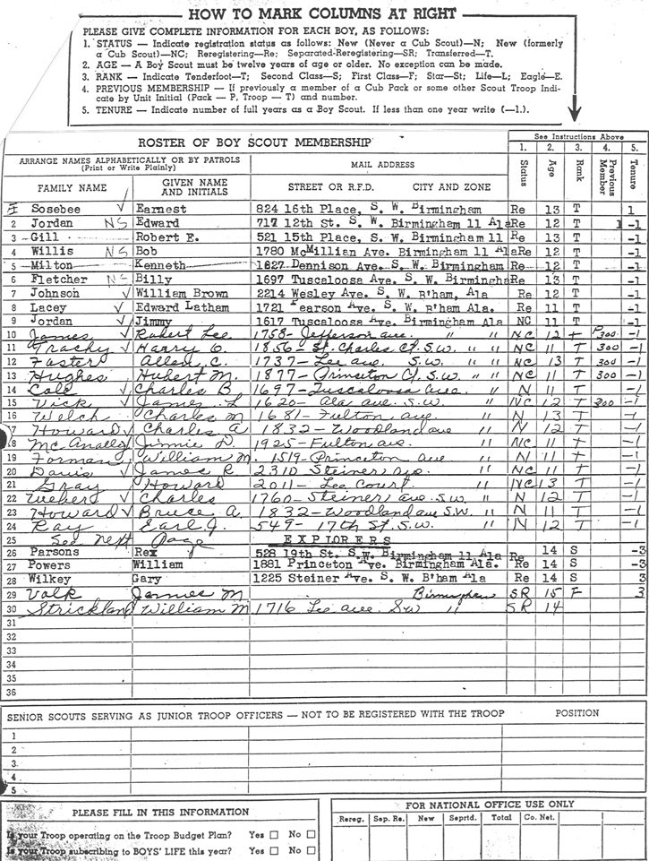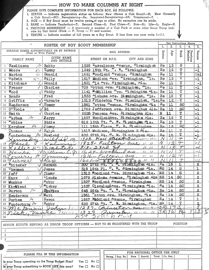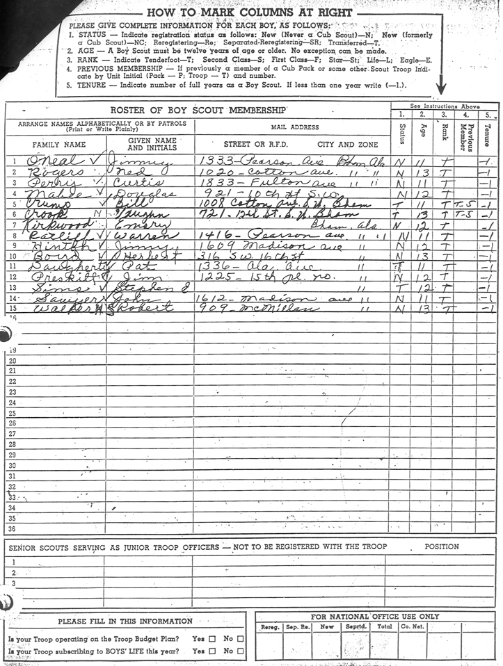 Roster of Membership – Troop 34 (West End Methodist Church)