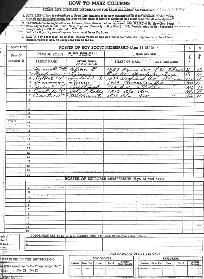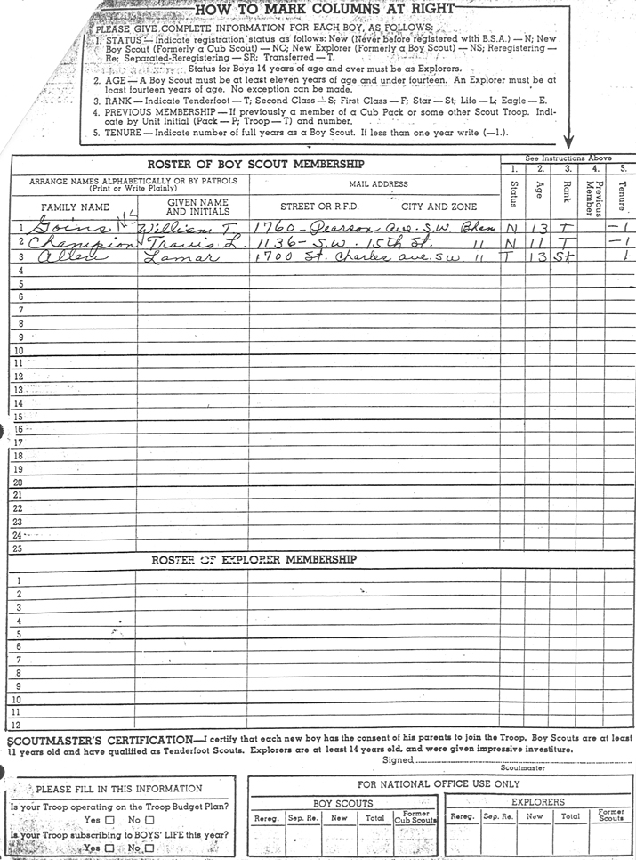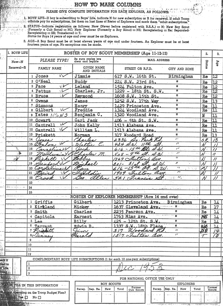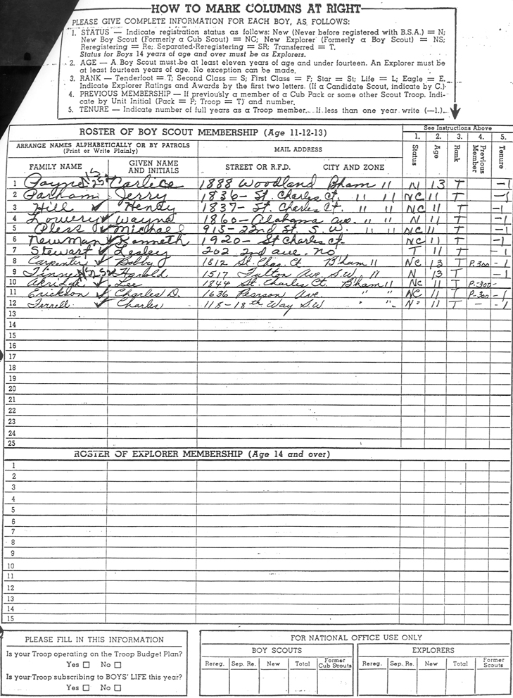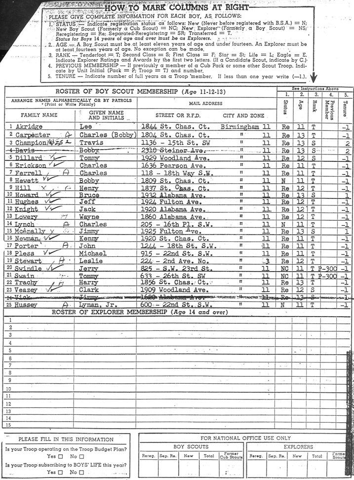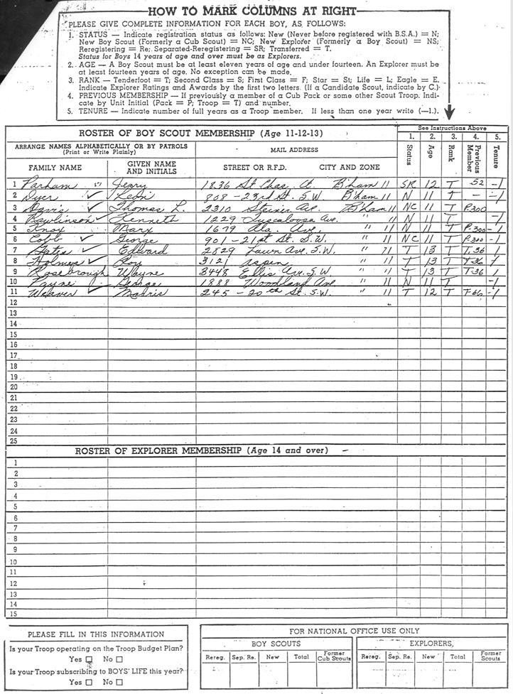 Roster of Membership – Troop 34 (West End Methodist Church)