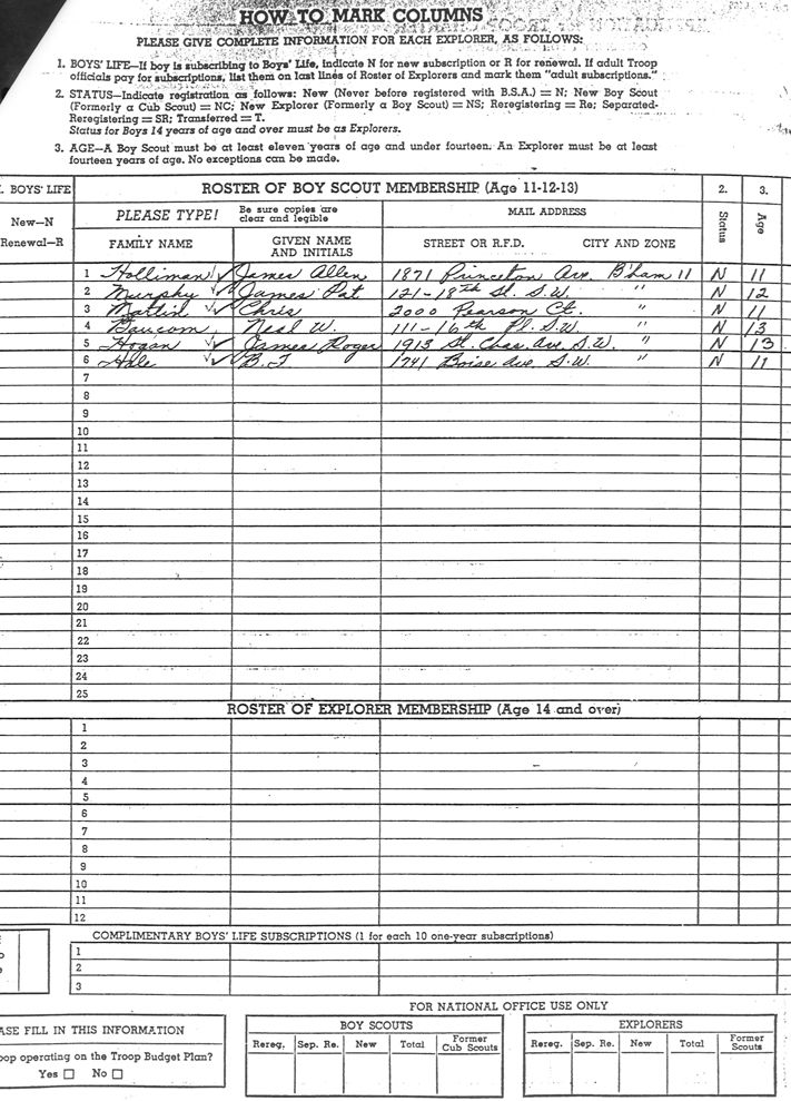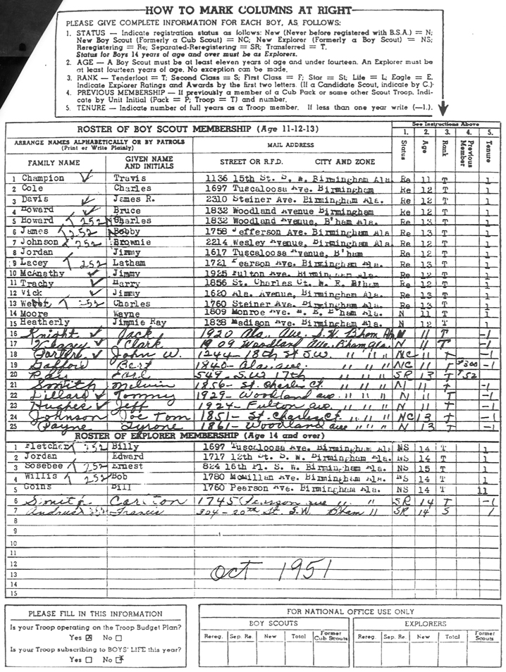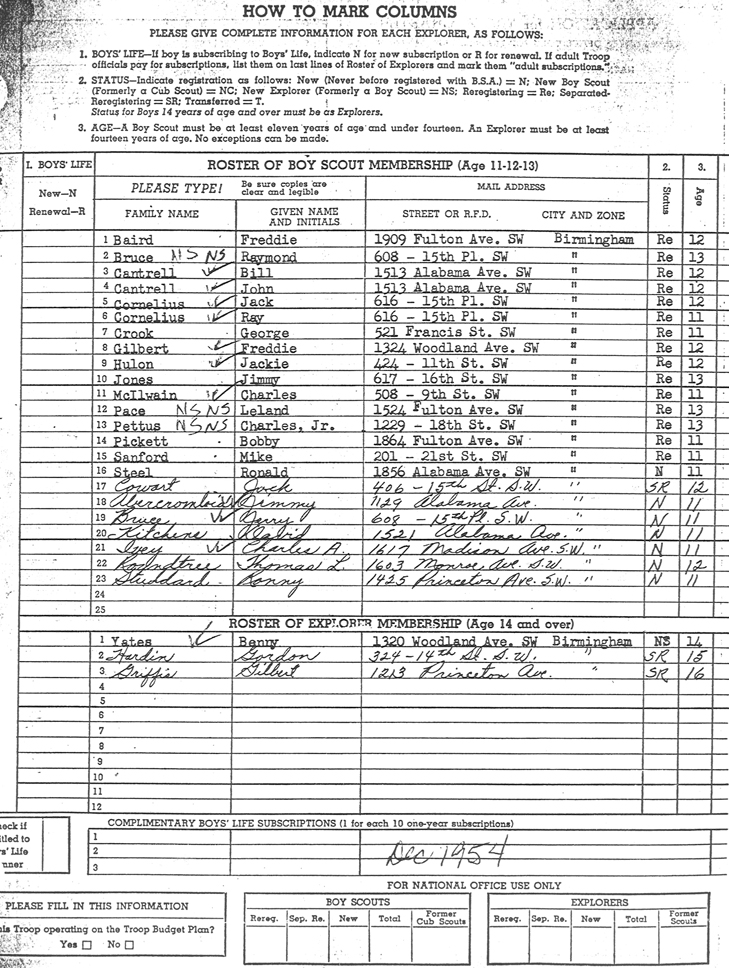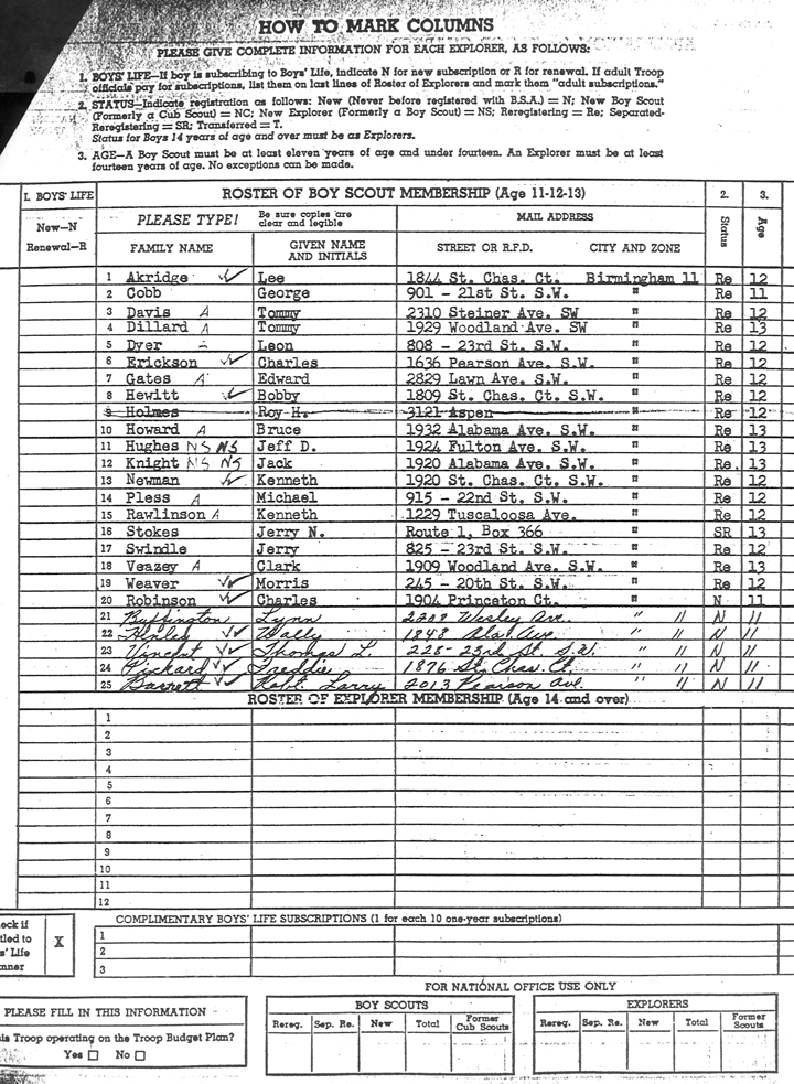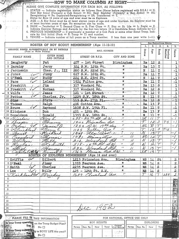 Roster of Membership – Troop 52 (Berney Points Baptist Church)