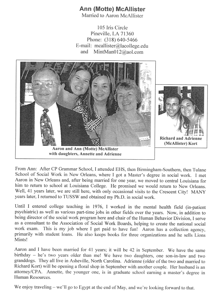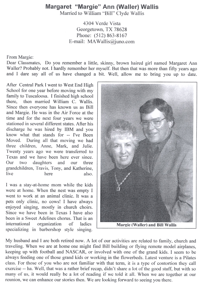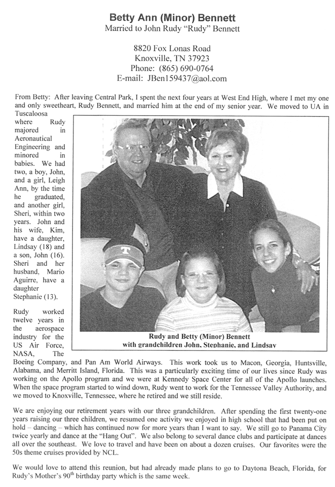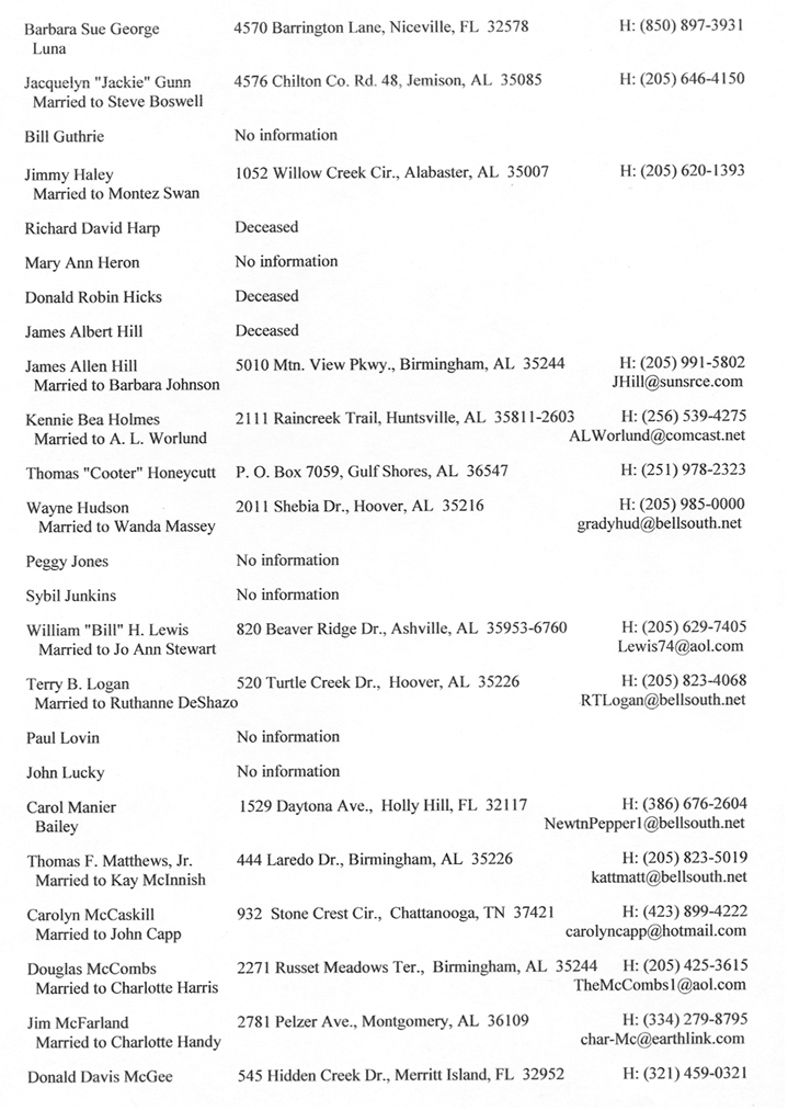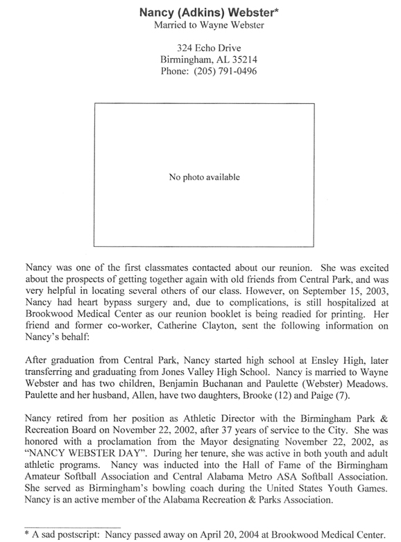 - Central Park School Classmates at 1976 West End High School 20th Year Reunion.
