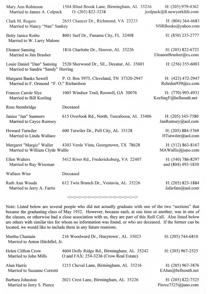 - Robinson, Mary Ann to Woods, Ruth Ann + First Section of “Associated with class”