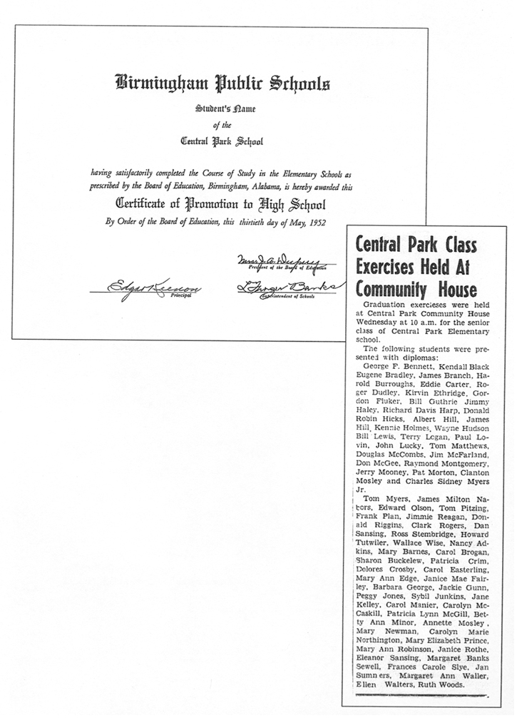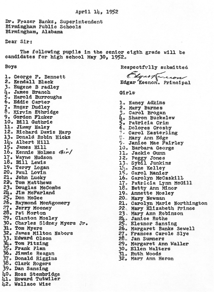 April 14, 1952, List of Candidates for High School from Central Park Elementary
