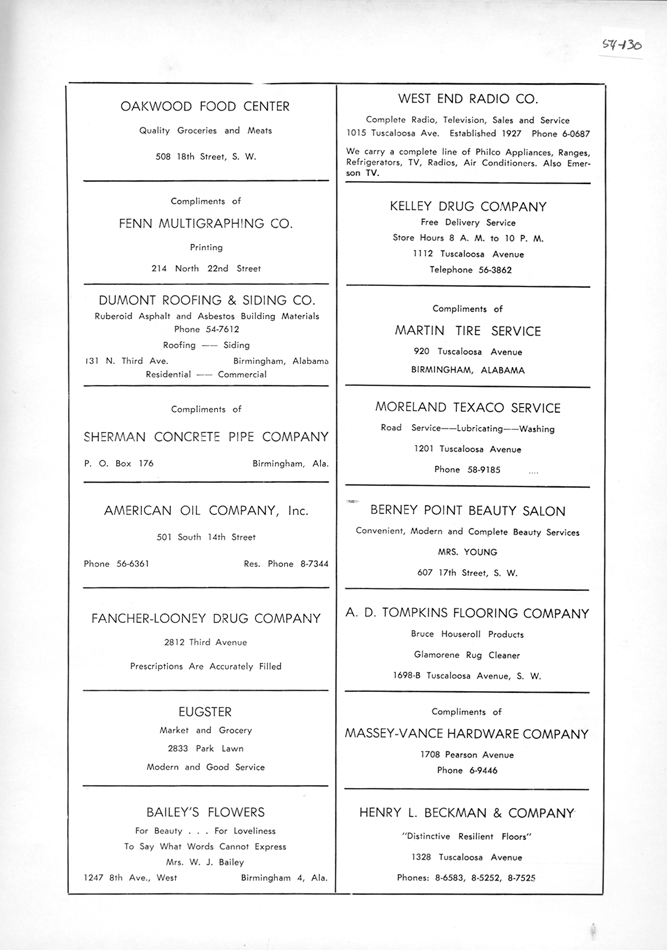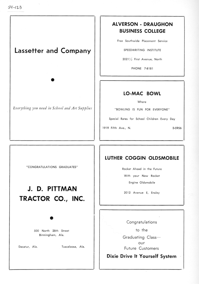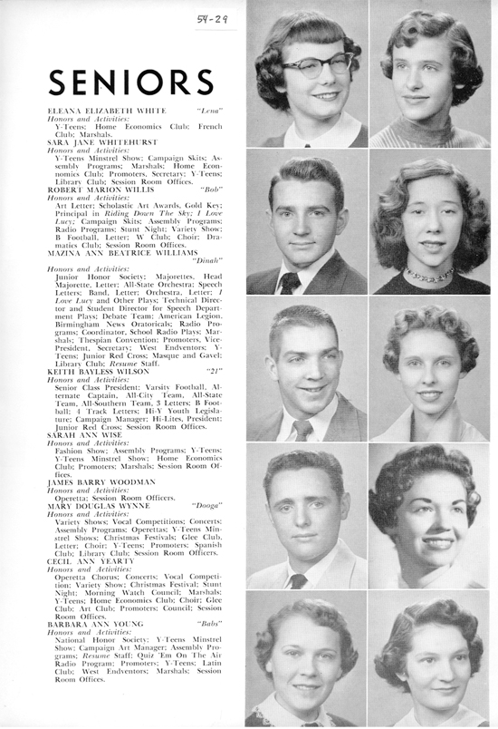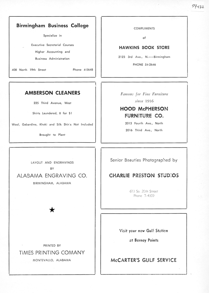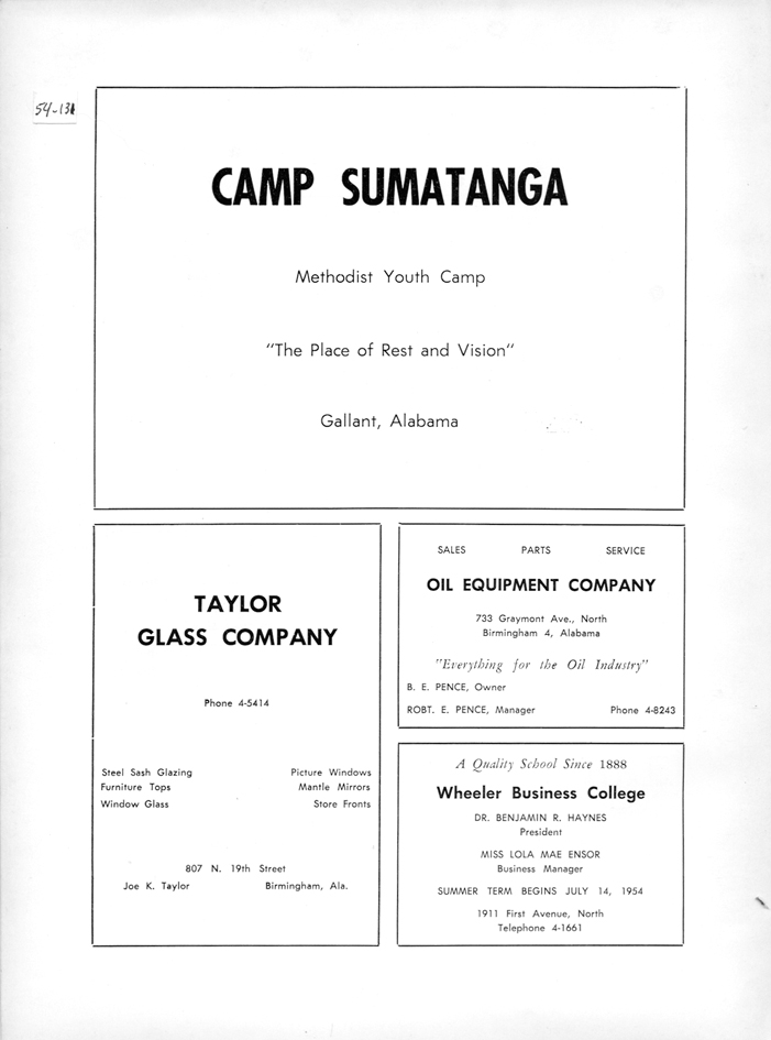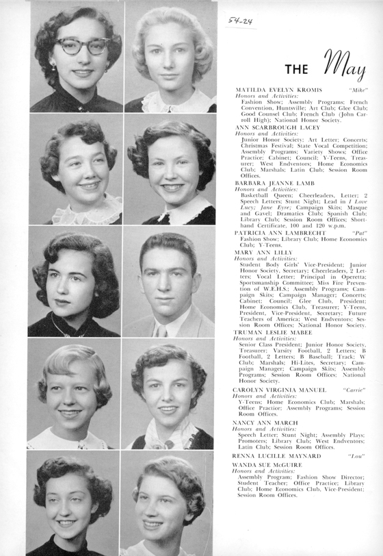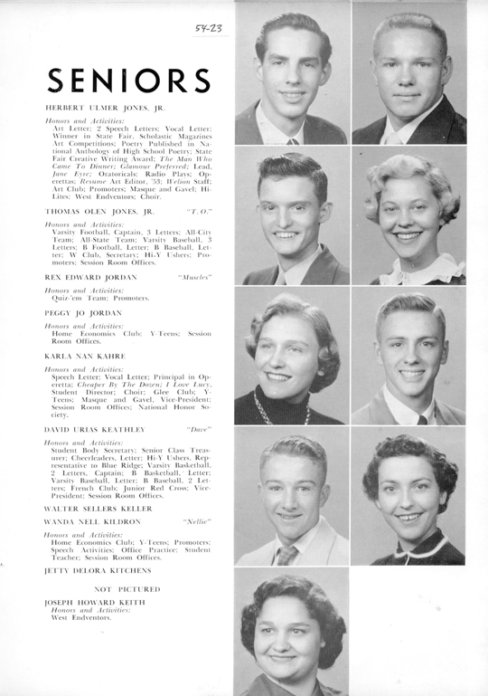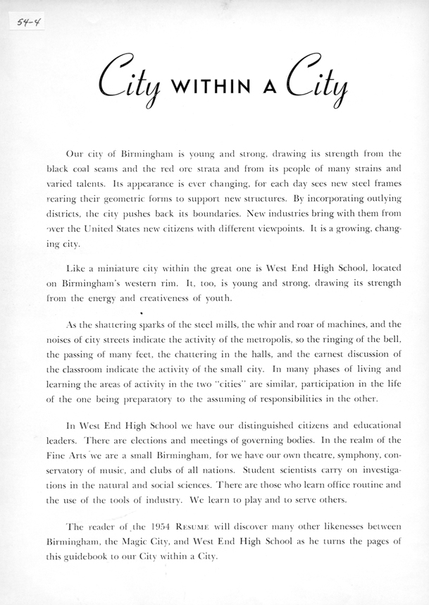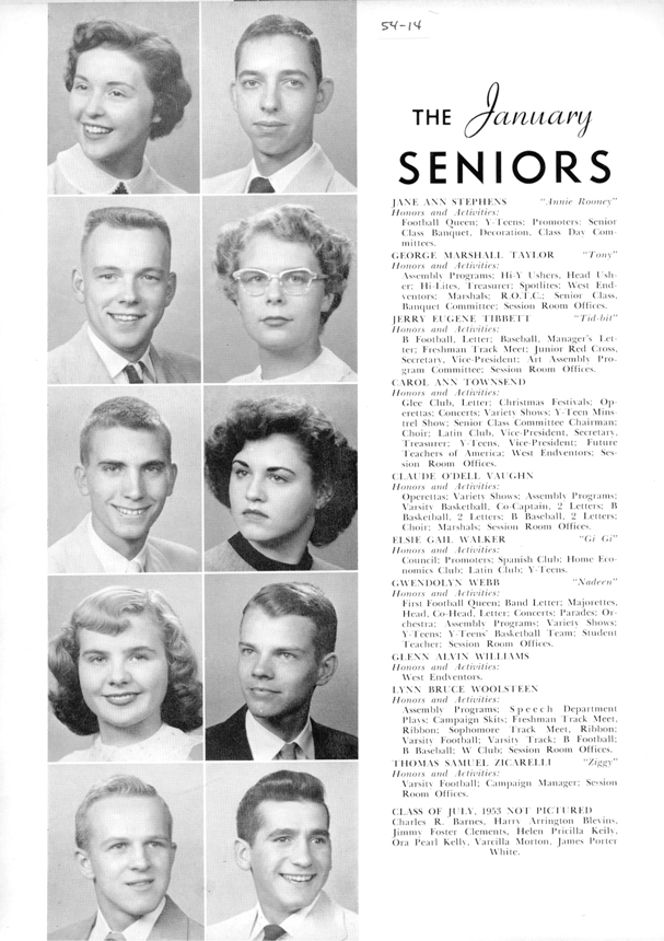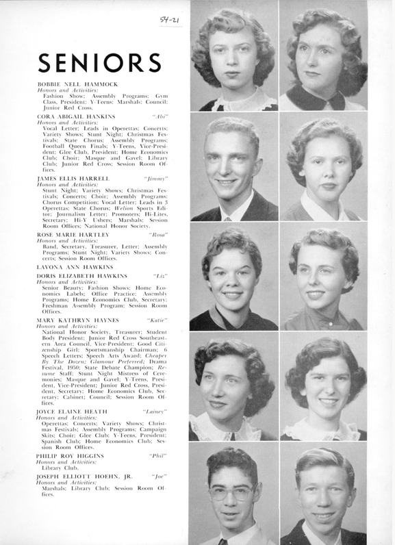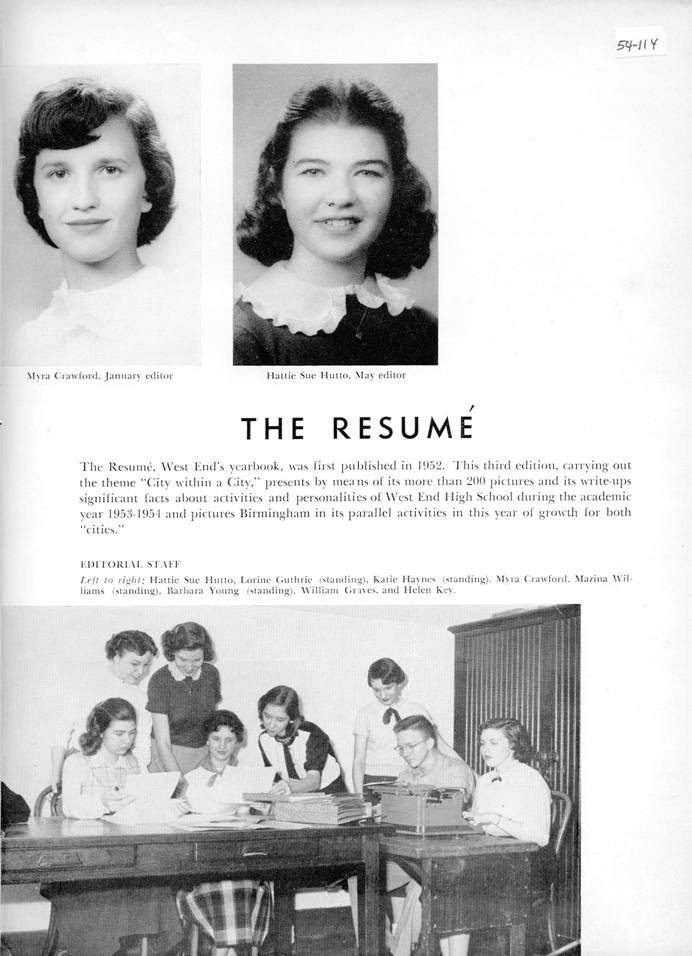 The contents of the 1954 Resume are listed below. To see any page, just click the link and the image will open in a new window. This is the Resume of Billy Godwin ’56, courtesy of Bruce Howard ’58, with scans by Linda Love ’57.