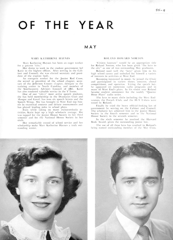 - May: Mary Katherine Haynes and Roland Howard Norton (54-009)