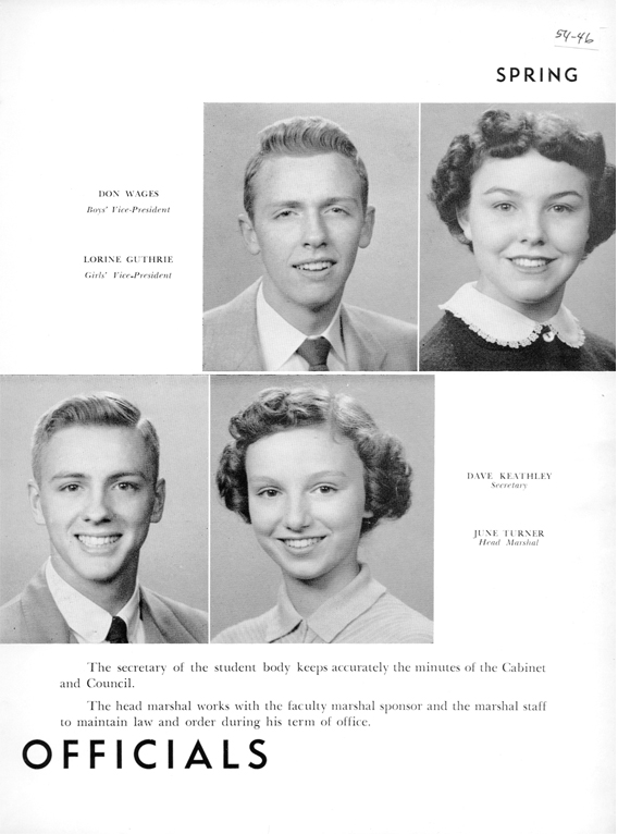 - May Class Officers: June Turner; Truman Mabee; Keith Wilson; Dave Keathley (54-007)