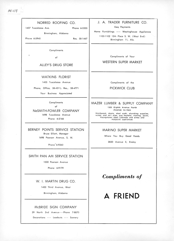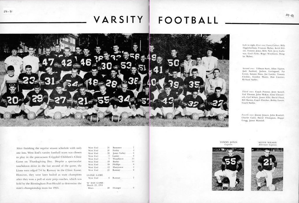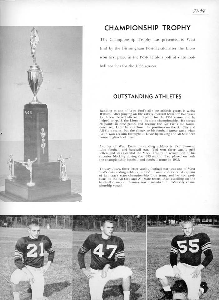 - Outstanding Athletes: Keith Wilson; Ted Thomas; Tommy Jones (54-094)