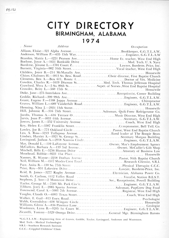 City Directory, Birmingham 1974 (Class Prophecy) (54-121a)