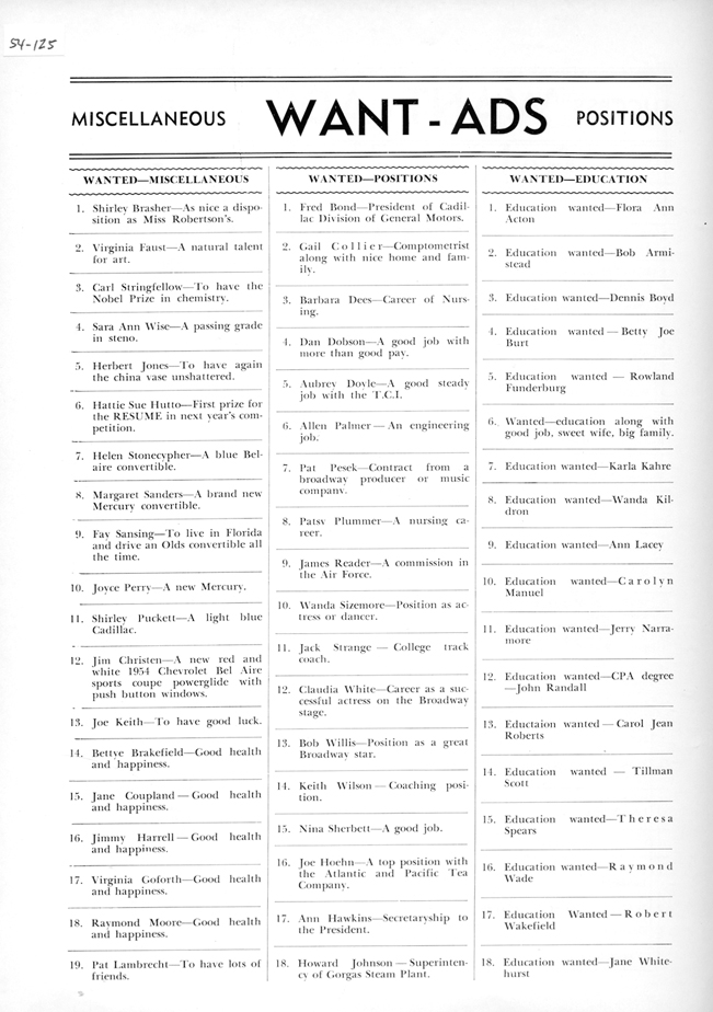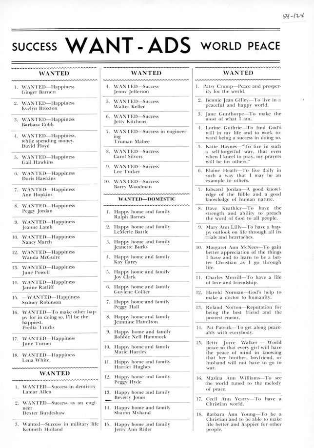 Want-Ads – Success / World Peace, Miscellaneous Positions (Class Wish List) (54-124 / 54-125)