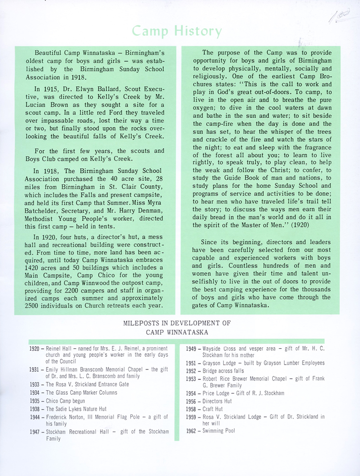 Camp History and Mileposts in Development of Camp Winnataska (003)
