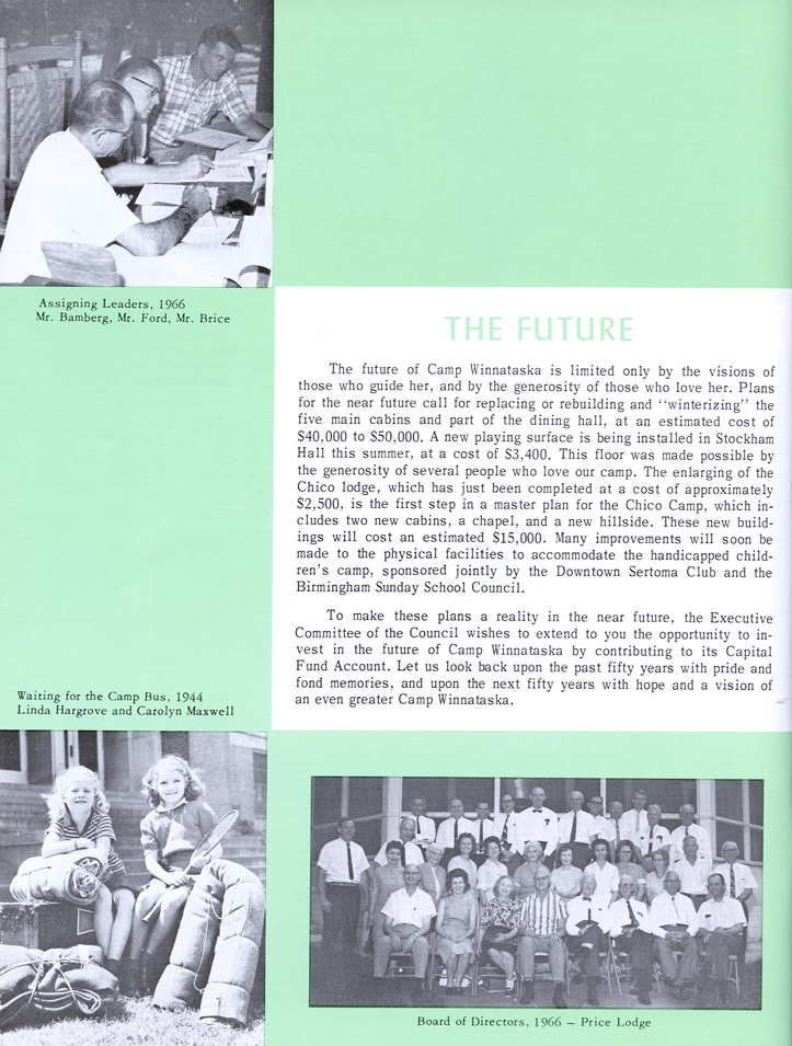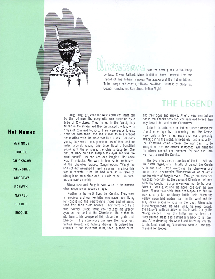 Below are the contents of the 50th Anniversary Commemorative Booklet for Camp Winnataska. Booklet provided by Bruce Howard ’58, scans by Linda Love ’57.