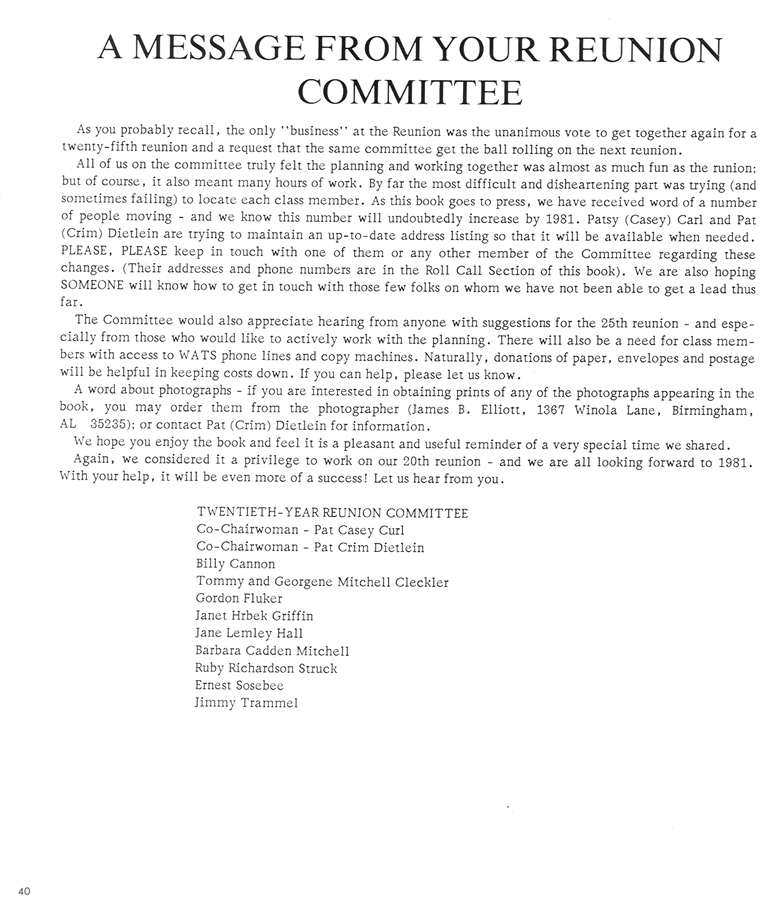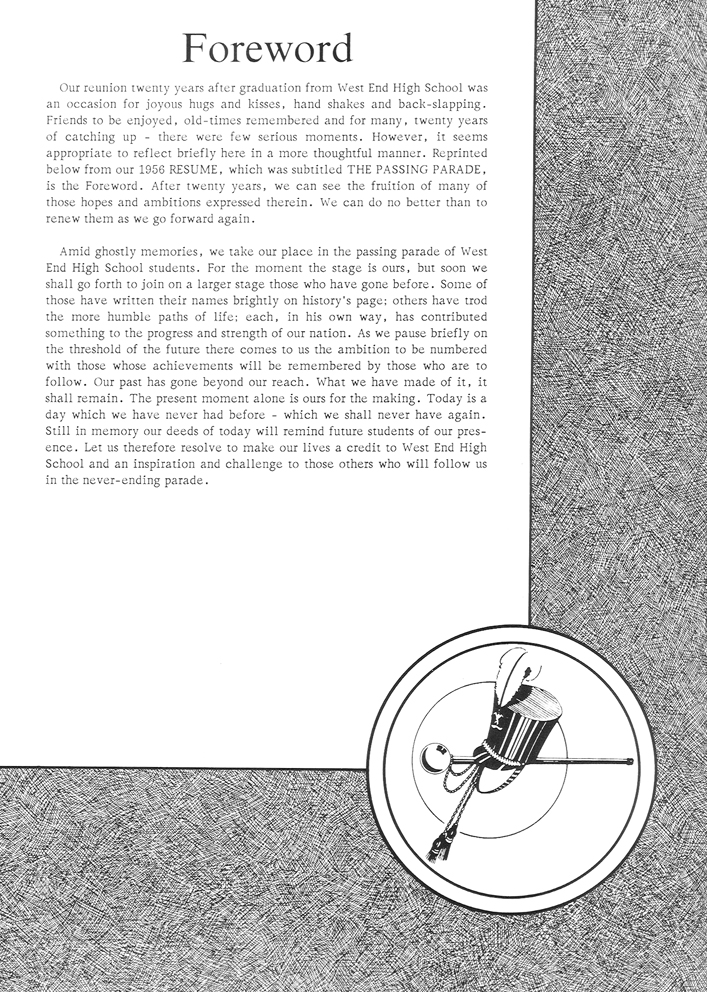 Below are the contents of the “reunion” Resume issued in connection with the August 21, 1976, twentieth-year reunion of the WEHS Class of 1956. Reunion Resume courtesy of Bruce Howard ’58, scans by Linda Love ’57.