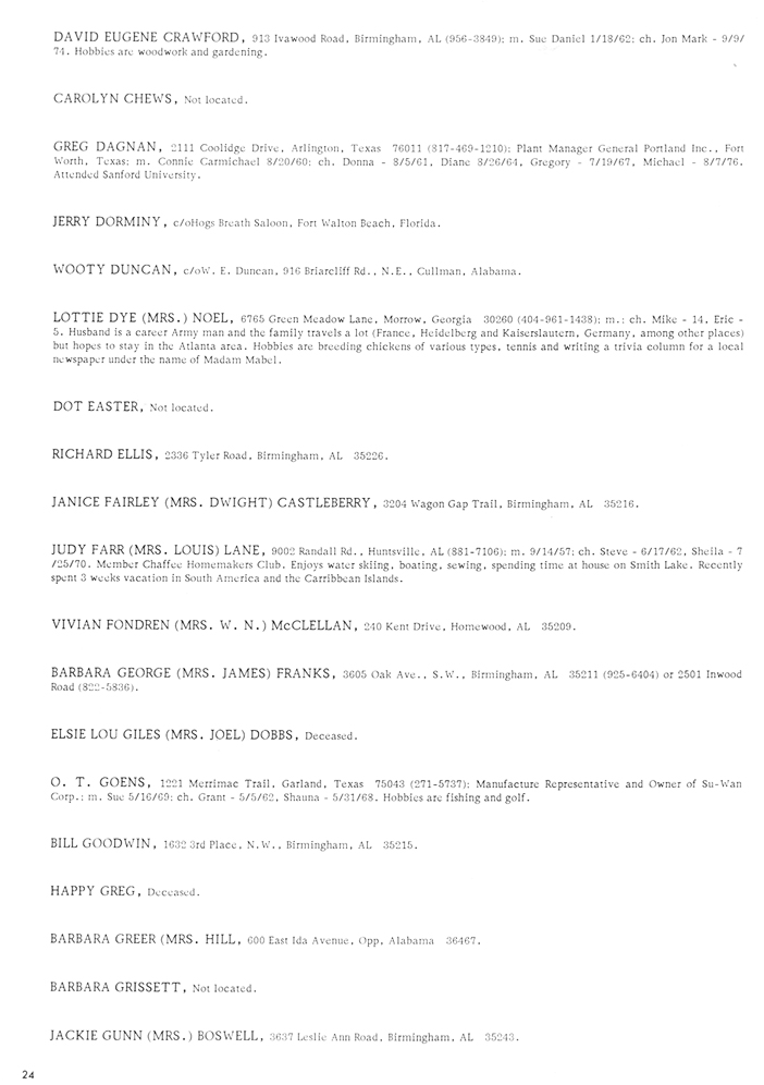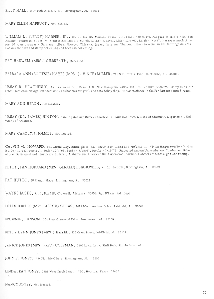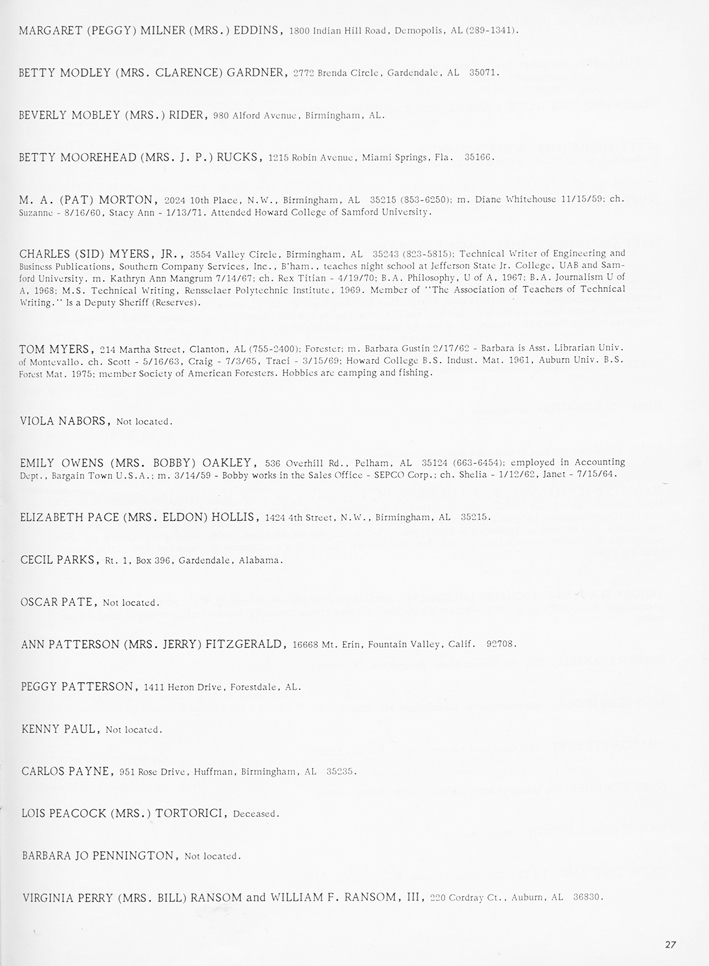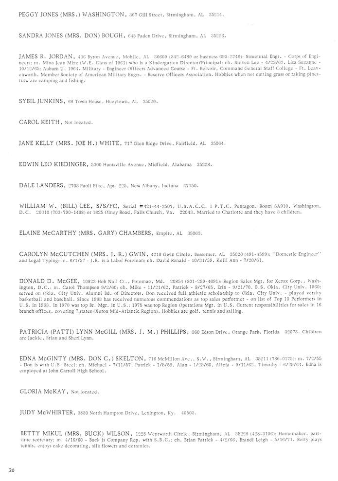 Members of the Class of 1956 Who Could Not Be Located at Time of This Twentieth Reunion