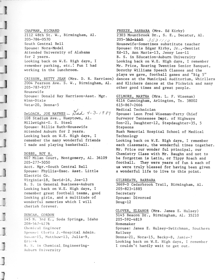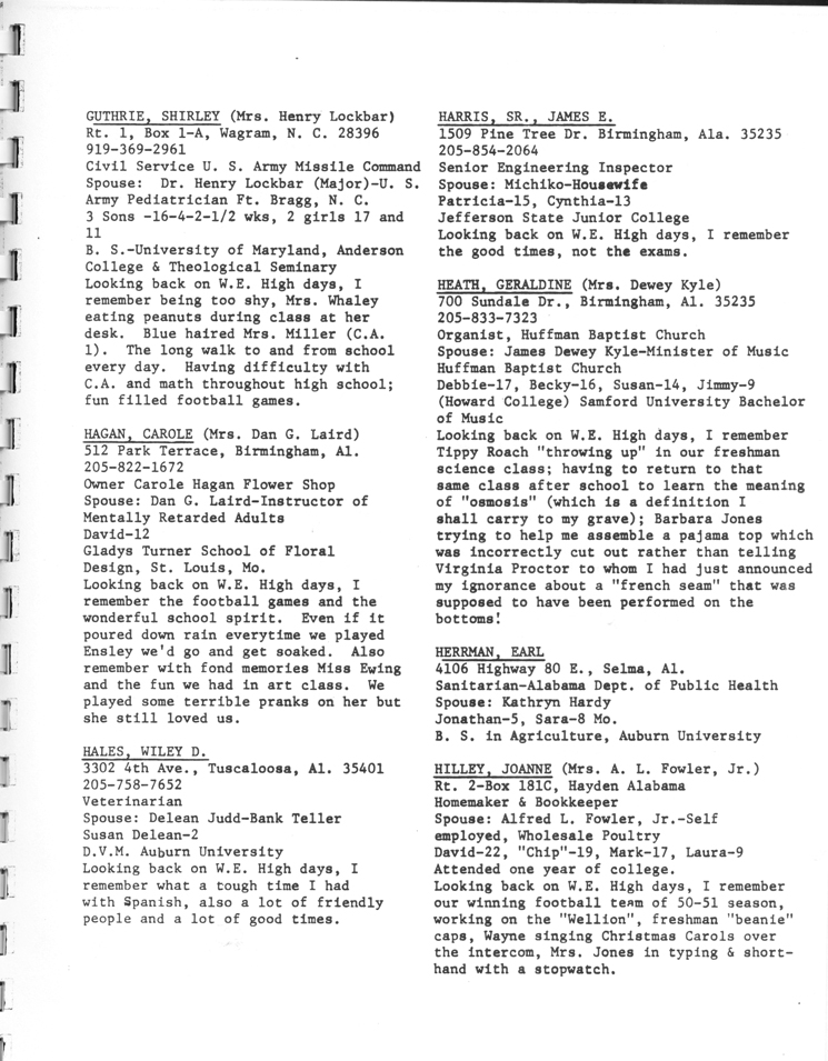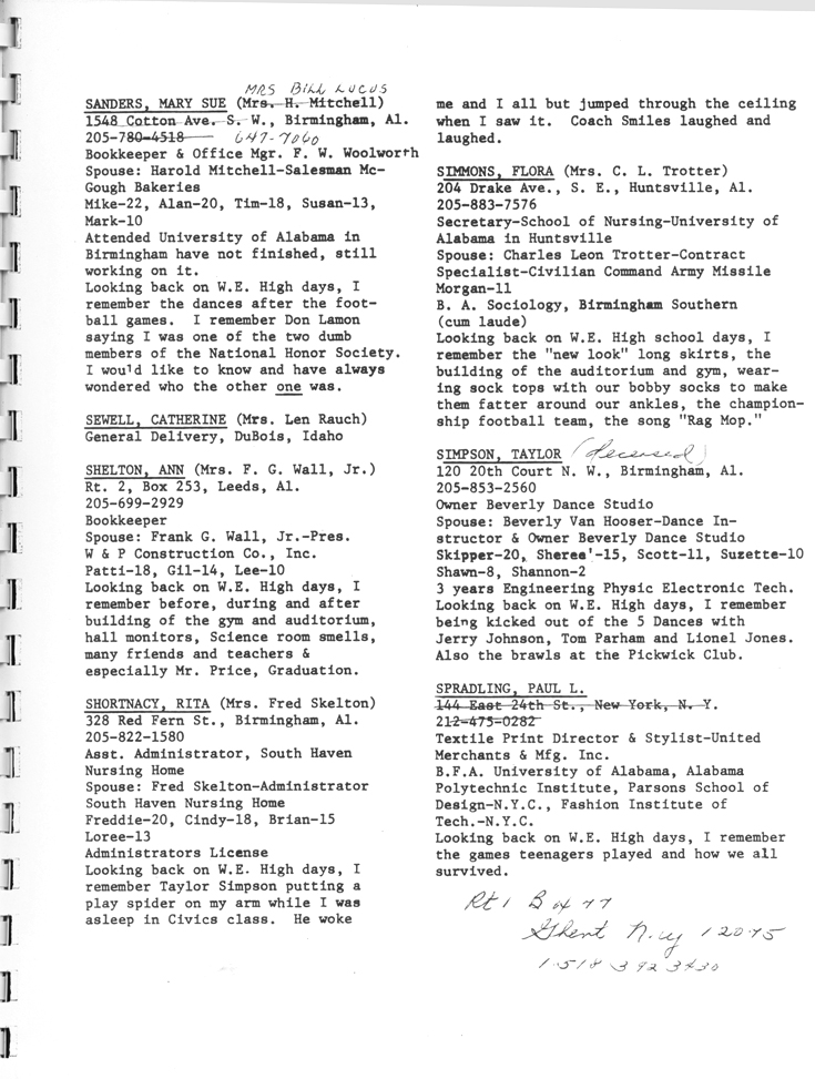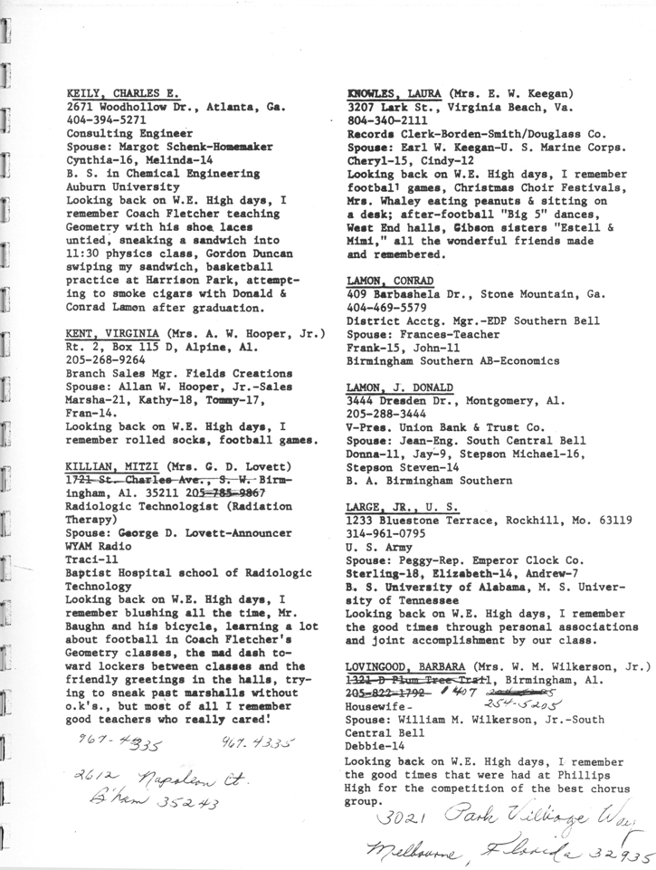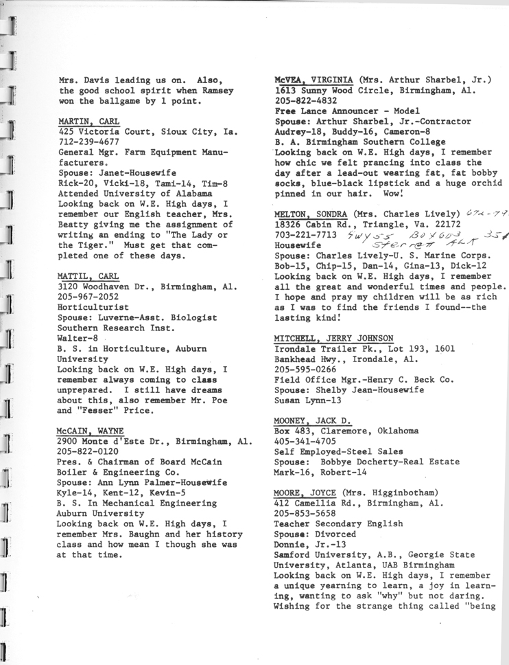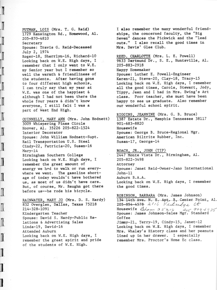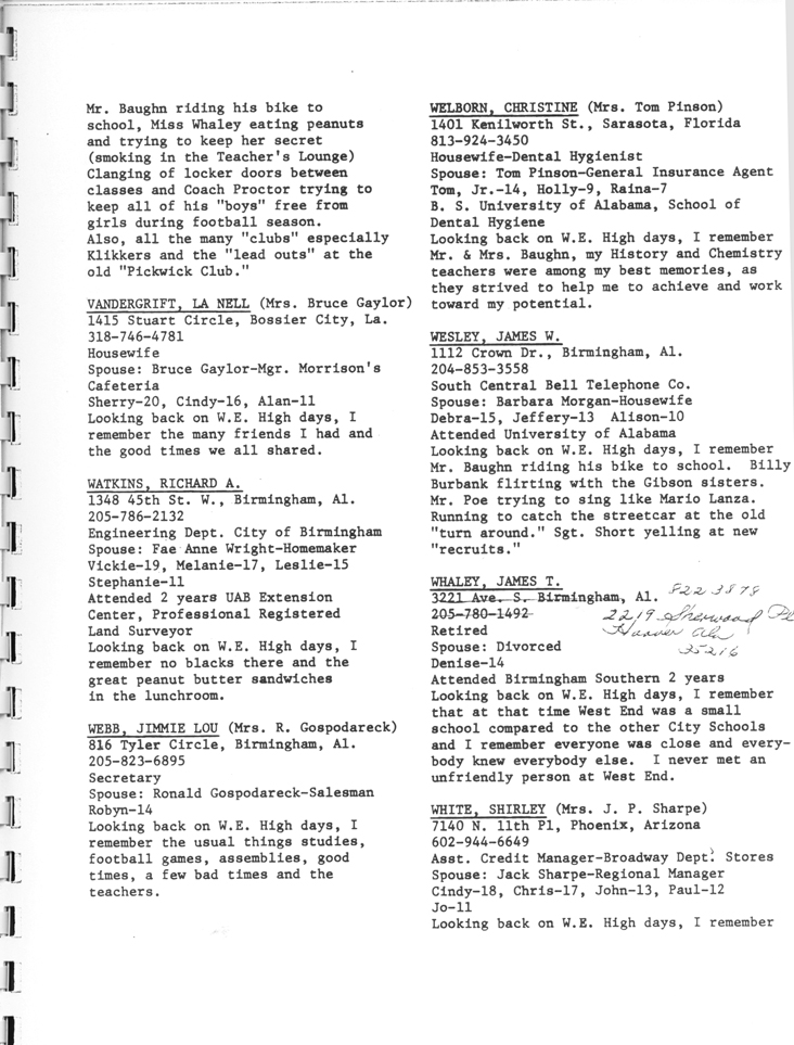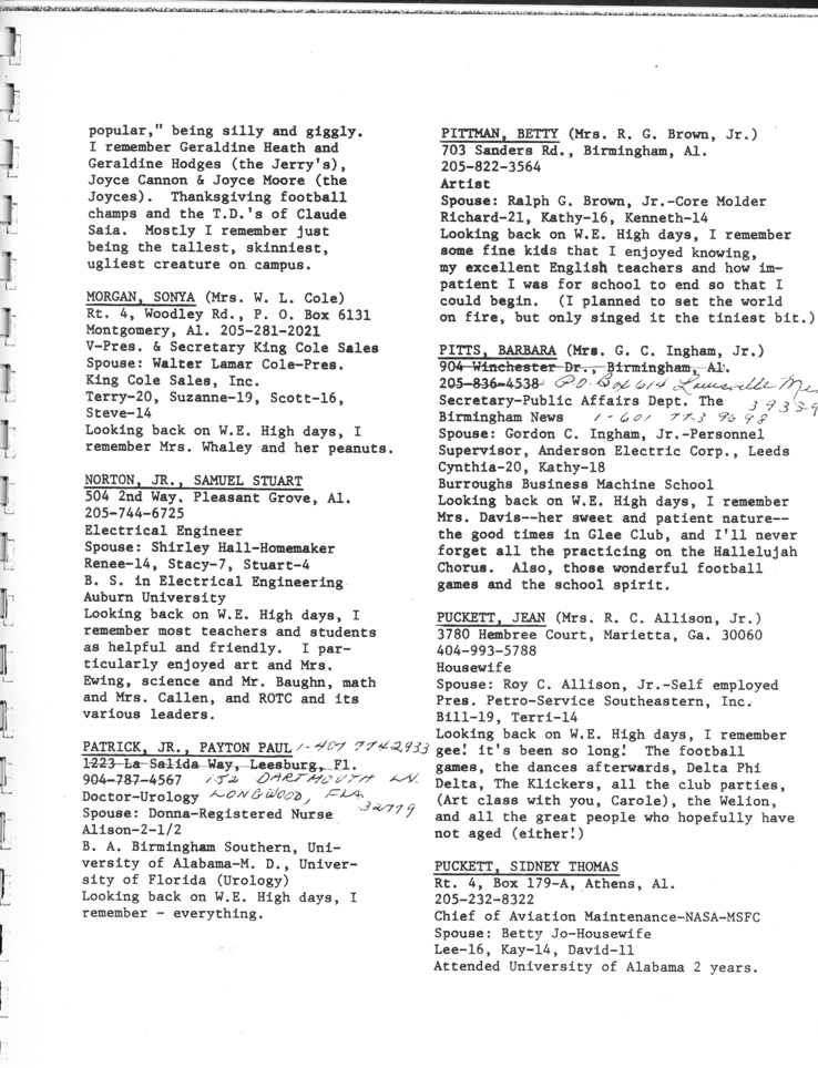 Below are the contents of the Program issued at the time of the July 5, 1975, reunion of the WEHS Class of 1951 at Kahler Plaza in Birmingham, Alabama. Program provided by Bruce Howard ’58, scans by Linda Love ’57.