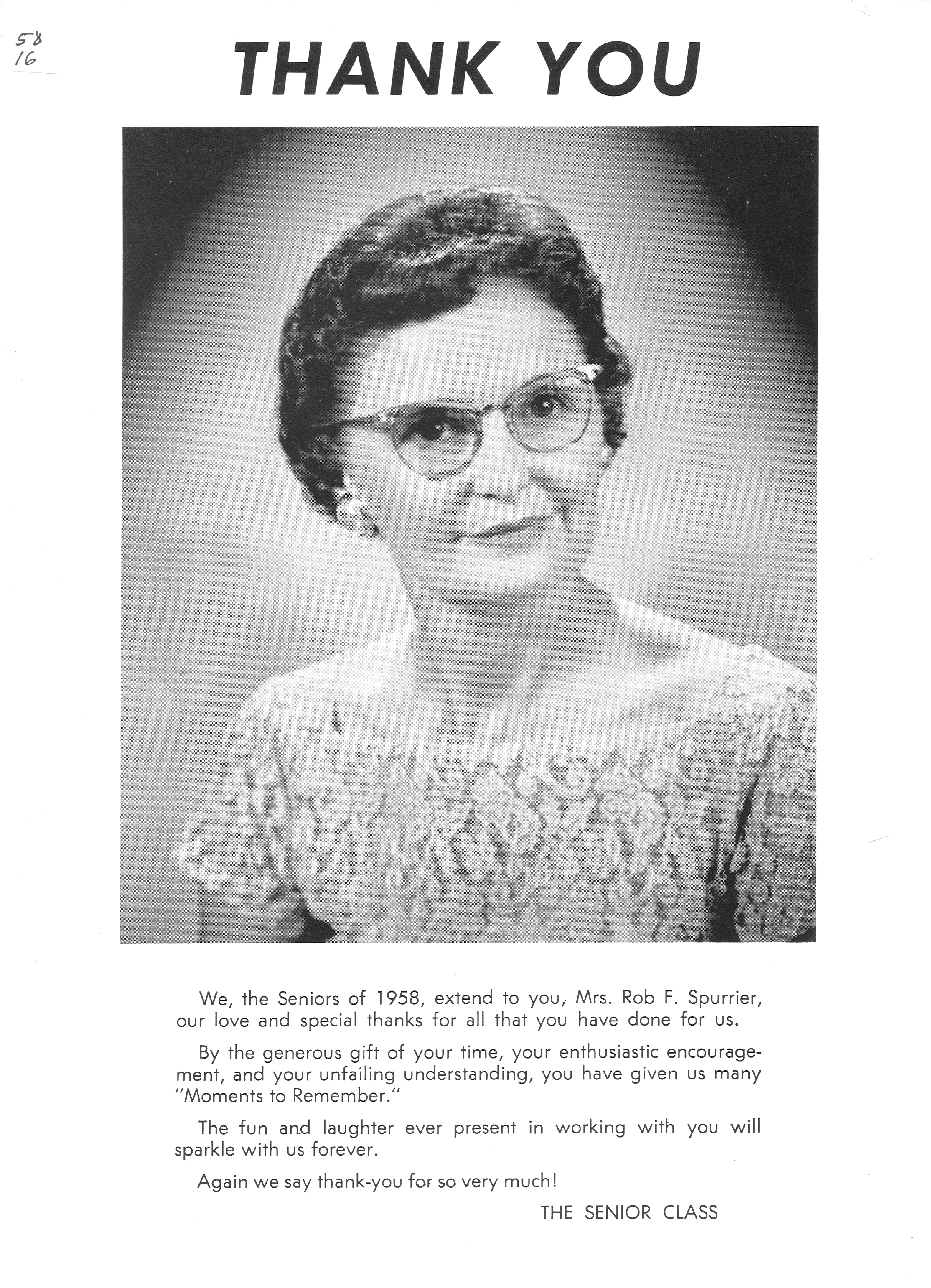 - Thank You to Mrs. Robb F. Spurrier (58-16)