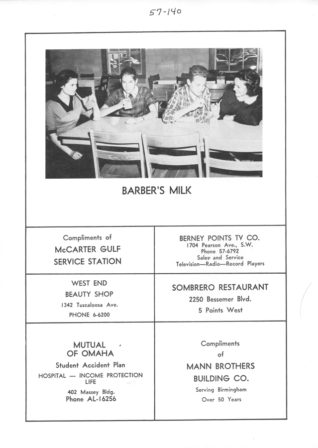 - Students drinking Barber’s Milk (Sharon Meadows, Unidentified, Bailey Dickinson, Linda Love) (57-140)