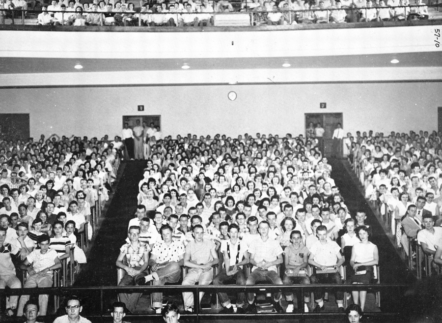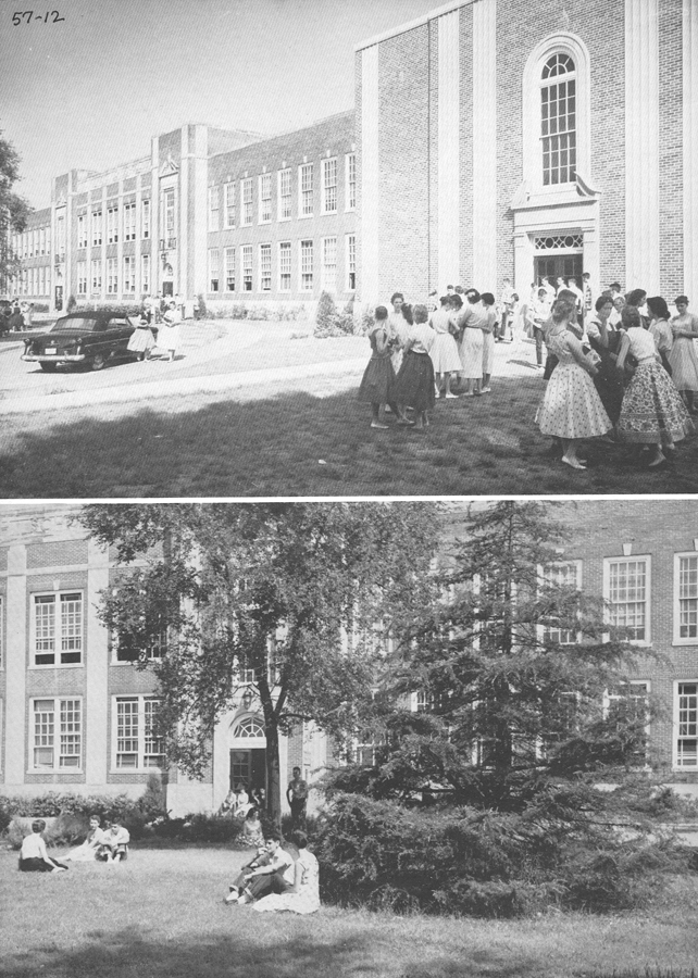 It was not until 1949 that new construction began to address the overcrowding, followed in 1955 by yet more construction, which between the two building episodes added more than two dozen new classrooms, a gymnasium, a lunchroom, and an auditorium. The addition more than doubled the capacity of the school.