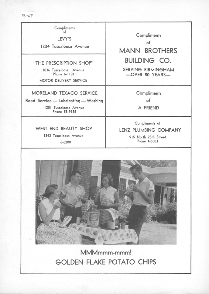 - Students eating Golden Blake Potato Chips (Unidentified, Charles Carpenter, Anne Shipp, Jimmy Satterfield) (56-119)