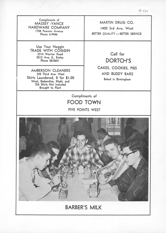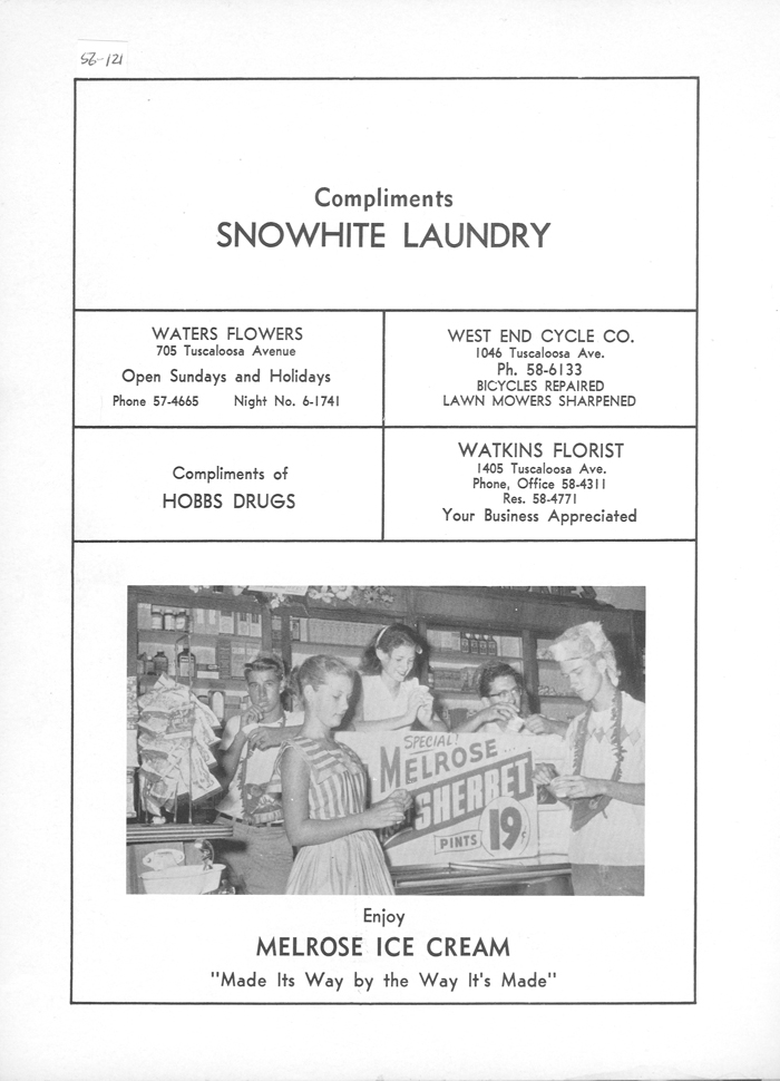 - Students eating Melrose Ice Cream (Robert Morris, Jan Brakefield, Linda Love, Robert Stansel, Jimmy Hinton) (56-121)