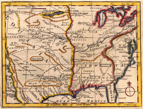 Map of Louisiana, Virginia, Carolina, Georgia, and Florida, 1763