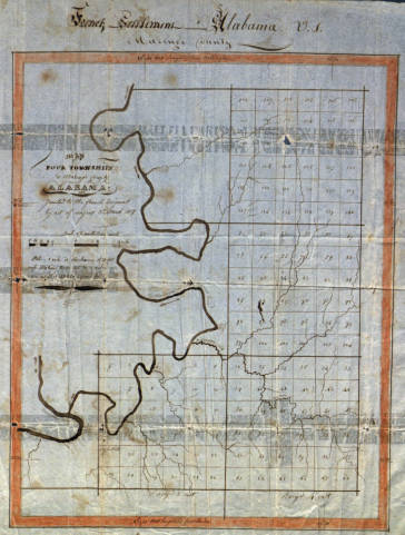 Map of four townships in Marengo County, Alabama: Granted to the French immigrants by act of Congress 3rd March 1817, c. 1817. Gift of Rucker Agee.