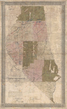 A map of the Creek territory in Alabama from the United States surveys: shewing each section & fractional section, 1833. Gift of Rucker Agee.