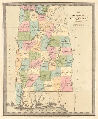 A new map of Alabama with its roads & distances from place to place, along the stage & steam boat routes, 1833. Gift of Rucker Agee.