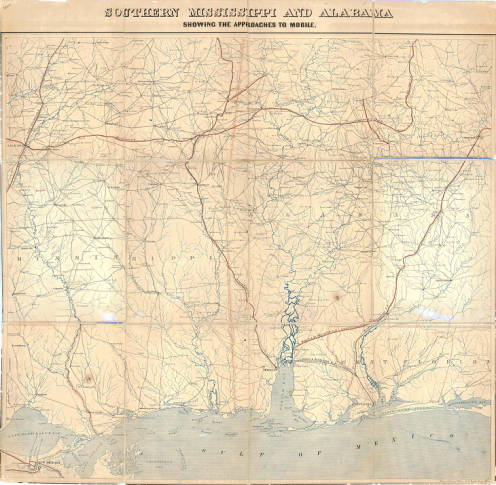 Southern Mississippi and Alabama showing the approaches to Mobile, 1863. Gift of Rucker Agee.