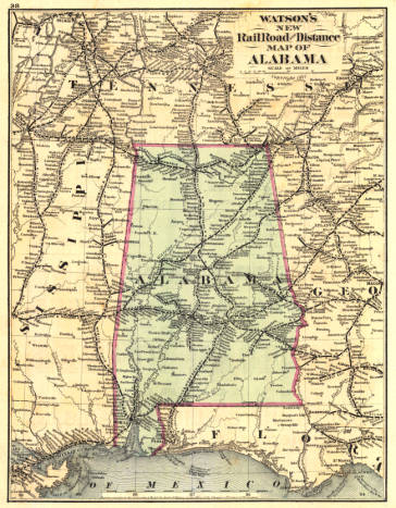 Watson's new railroad and distance map of Alabama, 1877. Gift of Rucker Agee.