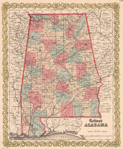 Colton's Map of the State of Alabama, 1872. Gift of Rucker Agee.