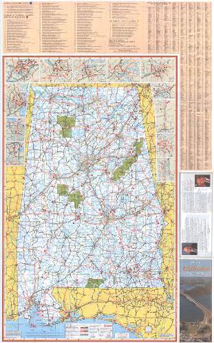 Regularly published by the Alabama State Highway Department, this map from 1997 shows modern day Alabama with highways, interstates, state, and county roads marked. Highway maps were essential tools for travelers in the days before GPS systems and smart phones. Major attractions, state parks, museums, and even covered bridges are all labeled. Everything anyone needed to know about touring Alabama can be found here.